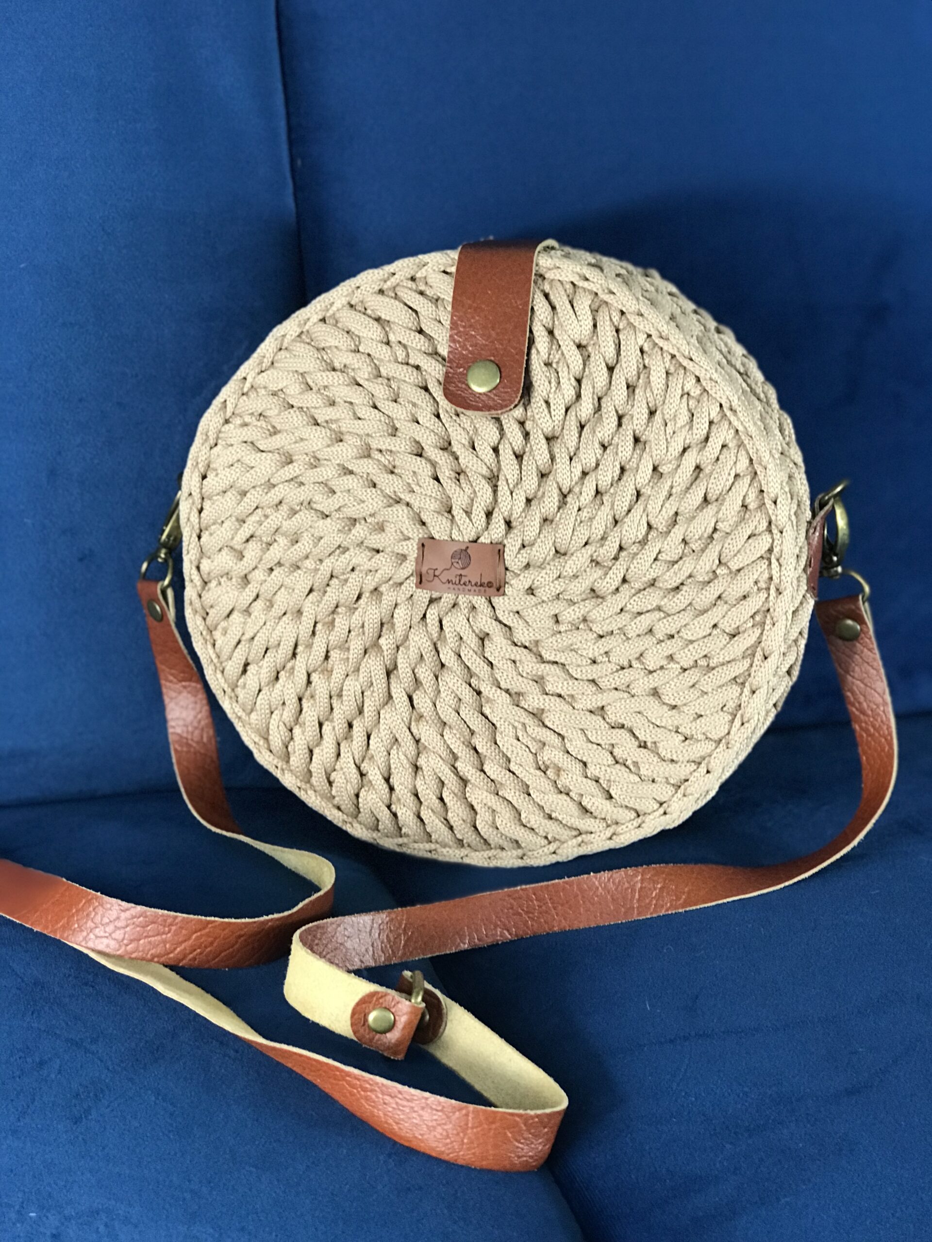 Jest lekka i pojemna. Posiada dodatki i pasek ze skóry w kolorze koniakowym. Zapięcie na zatrzask, nie